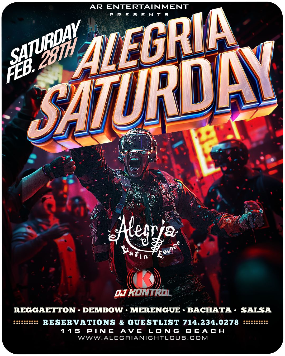 Your home for all your favorite LATIN music is inside Alegria. Friday: